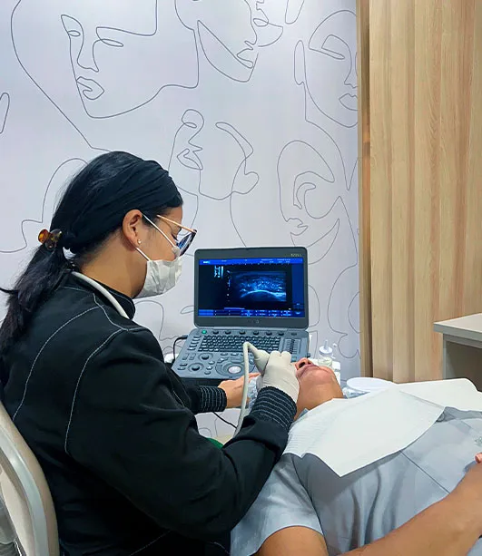 A ultrassonografia (ou ultrassom) é um exame de diagnóstico por imagem que utiliza ondas sonoras de alta frequência para criar imagens das estruturas internas do corpo. É um procedimento não invasivo e seguro, que não envolve radiação. A utilização da ultrassonografia na harmonização facial permite a personalização do tratamento de seu paciente.